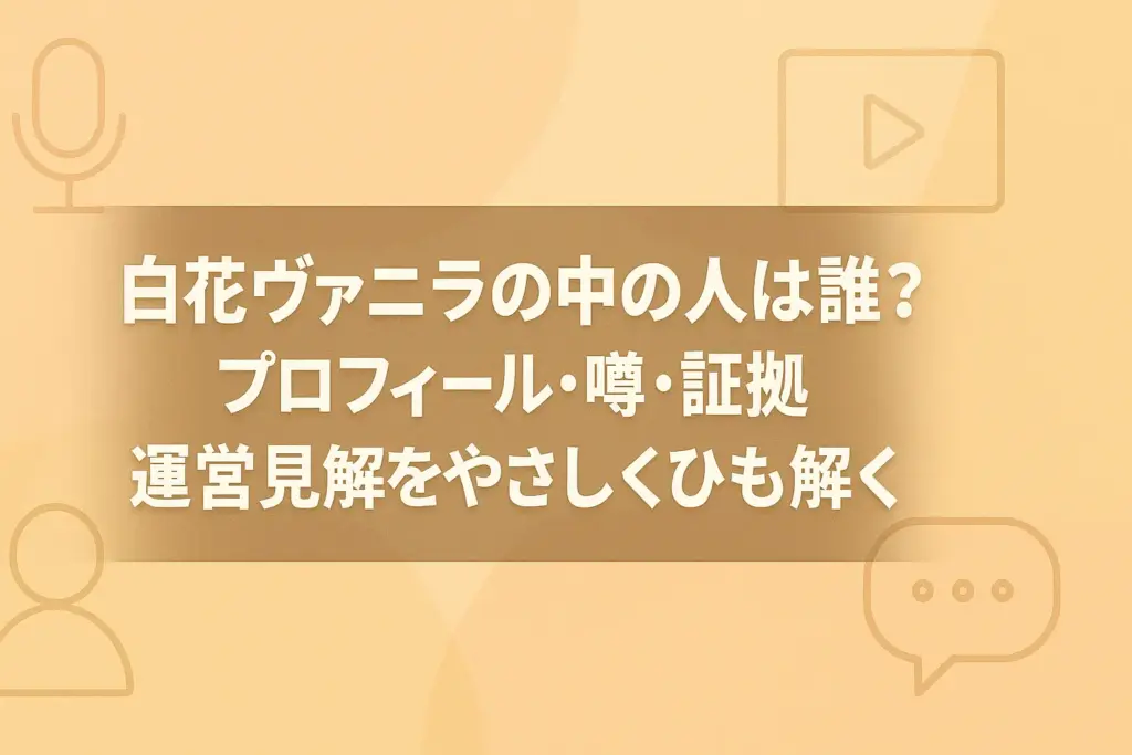 「白花ヴァニラって“中の人”いるの?」と気になって検索してきたあなたへ。 本記事では、ネット上で囁かれる中の人説、ファンの考察、公表情報を整理して、「誰なのか」をできる限り検証します。 最終的な答えも含めて、判断材料を一緒に見ていきましょう... -